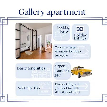 La propriété Gallery Apartment offre un four et un lave-vaisselle dans la cuisine. L'aéroport le plus proche est Aeroport de Prague-Vaclav-Havel, à 20 km de ce logement, et l'arrêt de bus Nadrazi Holesovice est dans une zone de 950 mètres.